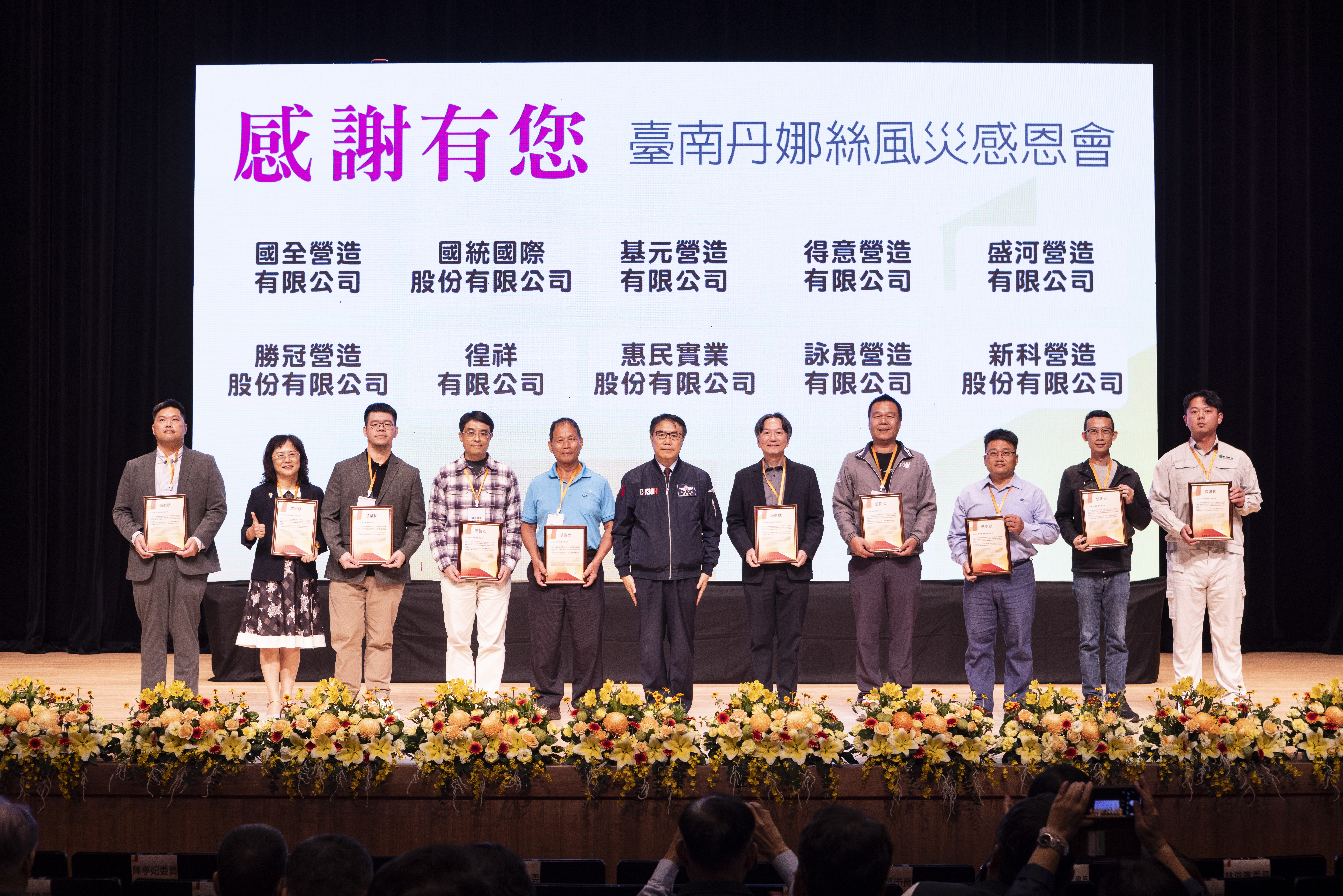 本公司近日受台南市政府邀請出席「台南丹娜絲風災感恩會」,與政府機關及各界夥伴共同回顧災後復原歷程。