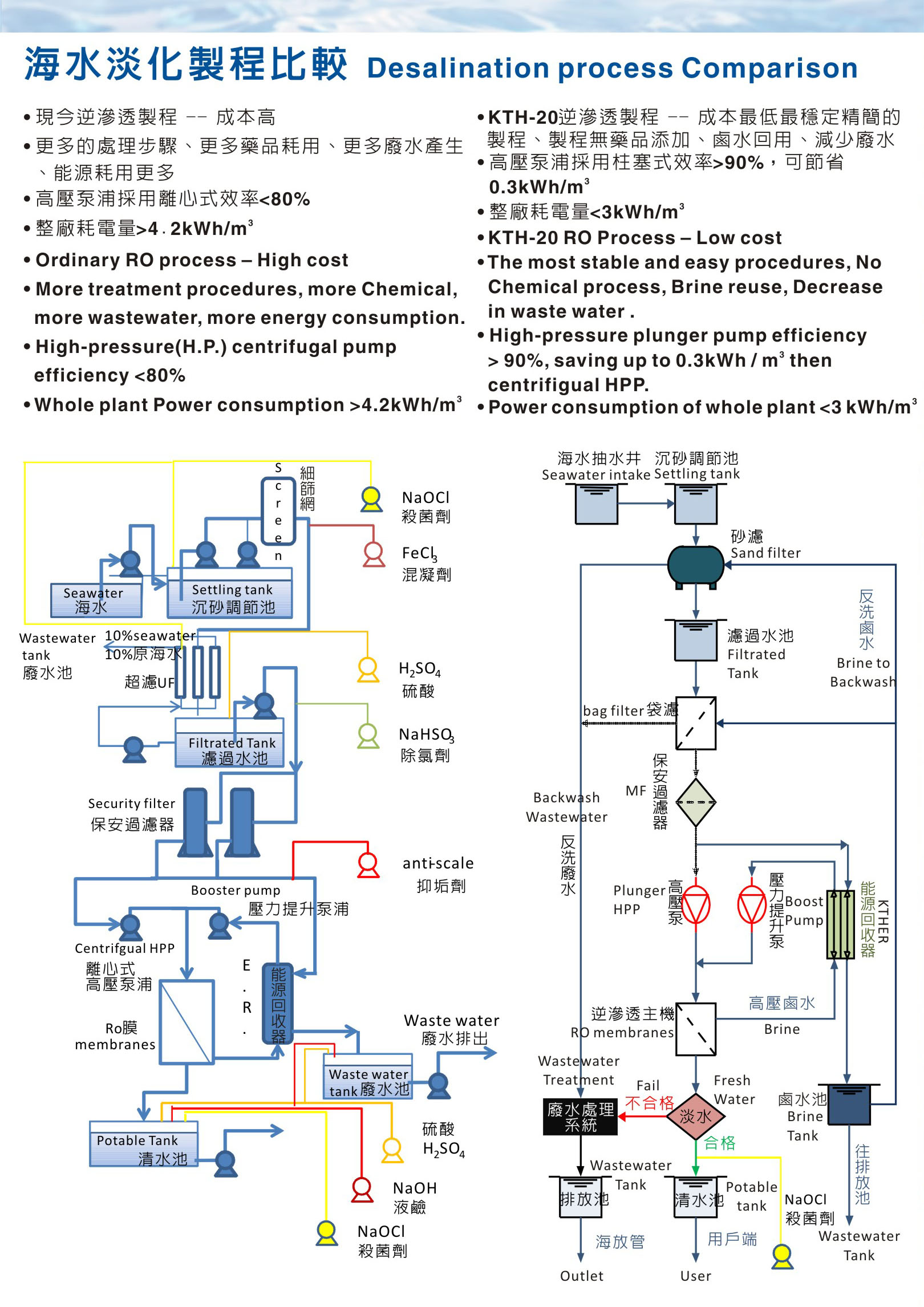 2004年以1US$/m3及3kwh/m3的最低水價及耗能運行至今。破除了海淡廠水價價格高又耗電的印象。