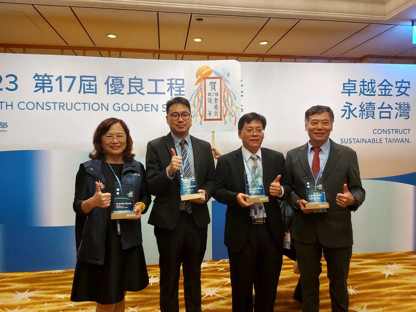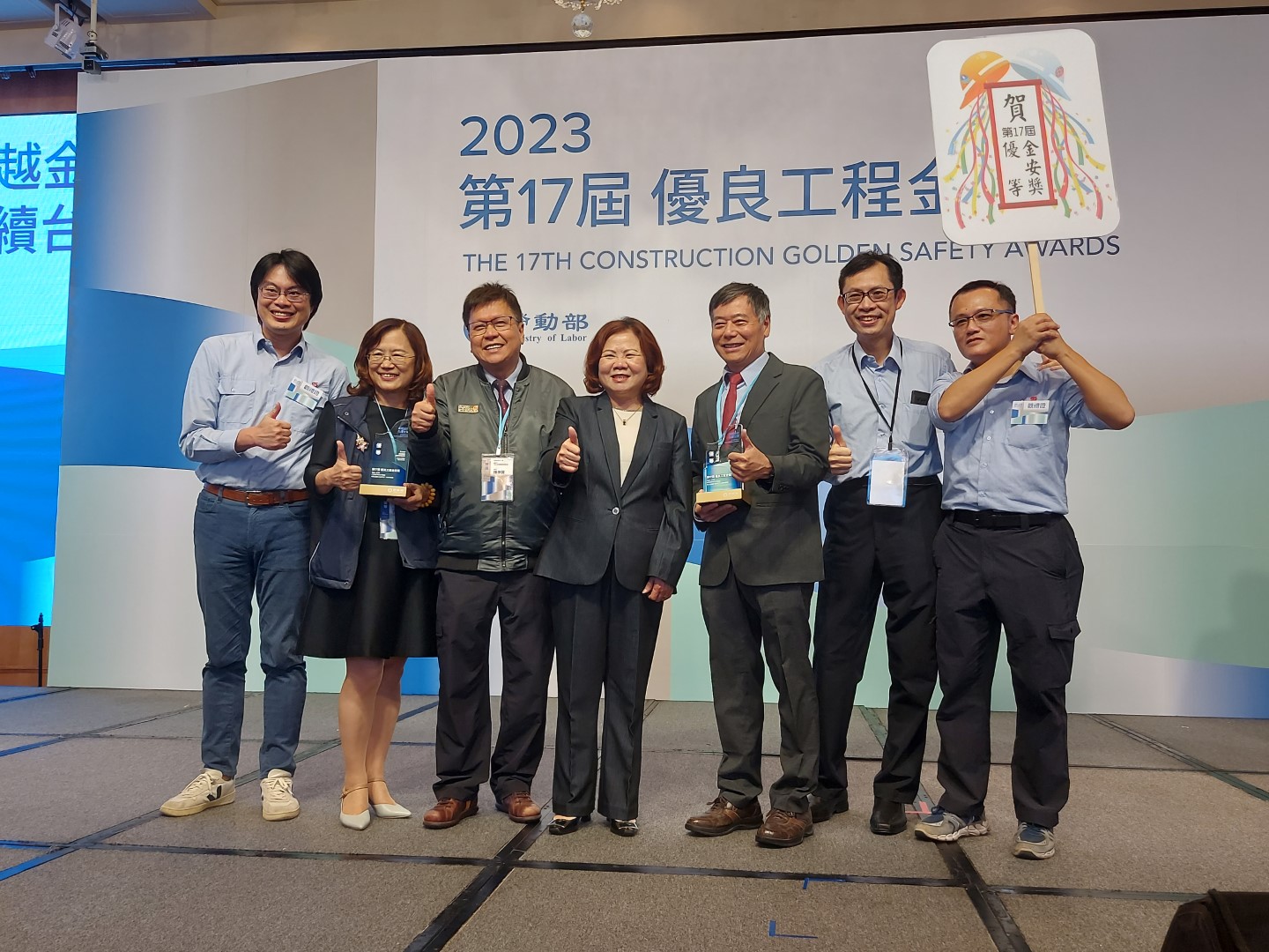 勞動部於11/24日舉辦「2023 第17屆優良工程金安獎」頒獎典禮,由許銘春部長主持,並邀請行政院工程會顏久榮副主委共同頒獎;